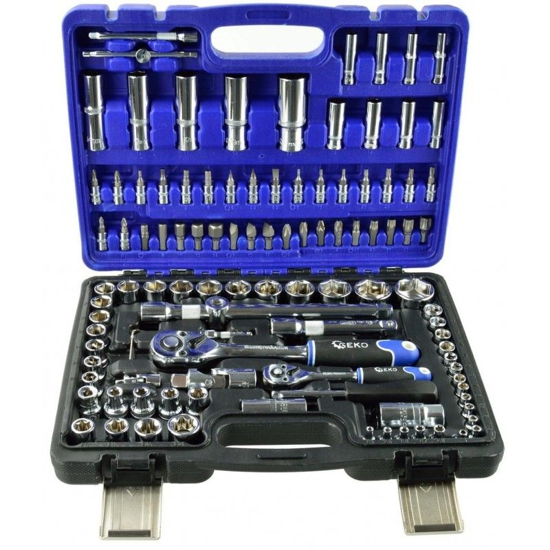 Juego de llaves de vaso 1/2" y 1/4" 108 piezas. Un conjunto universal diseñado para talleres, servicios, así como para uso doméstico. Las llaves están hechas de acero de aleación de cromo vanadio de alta calidad.